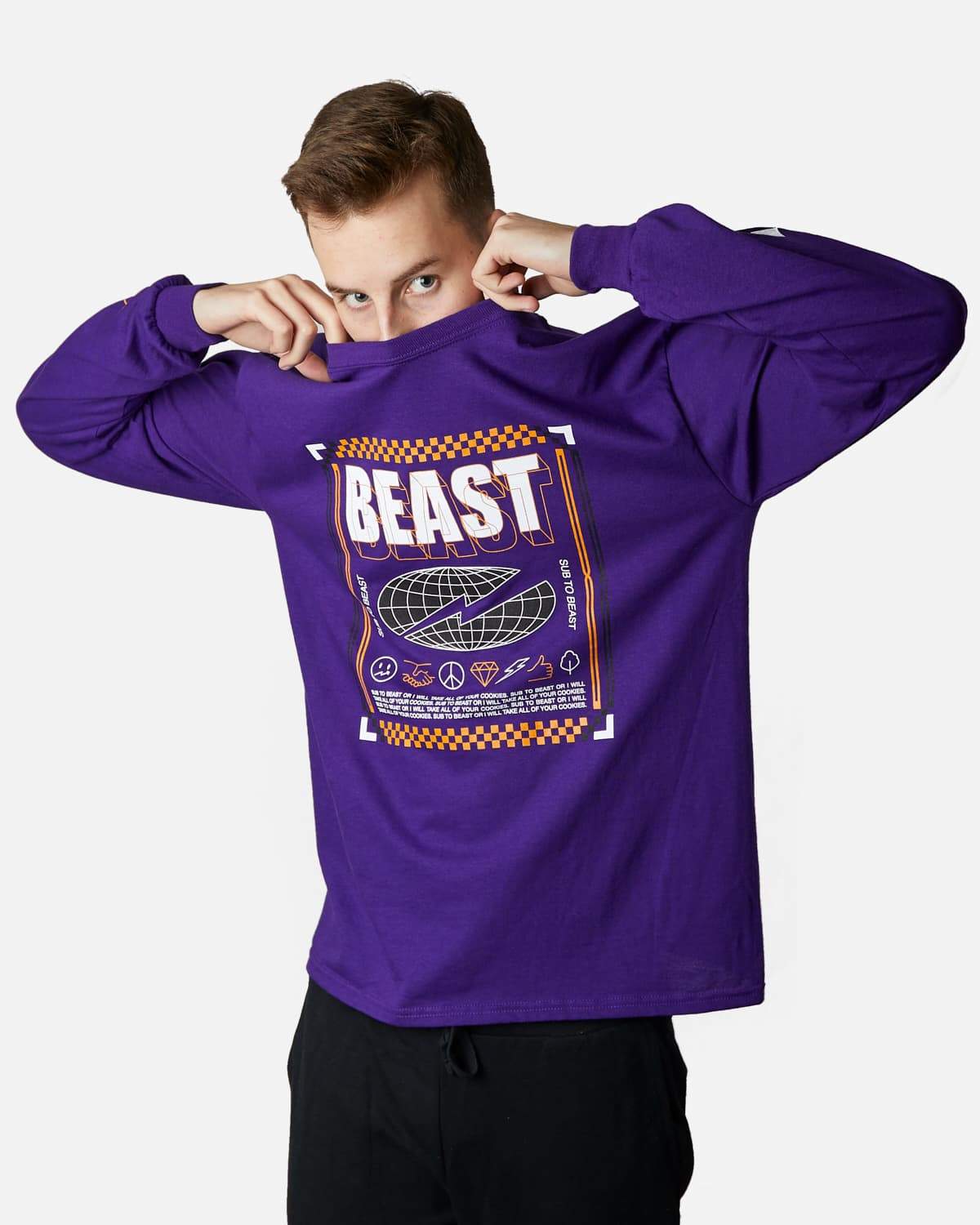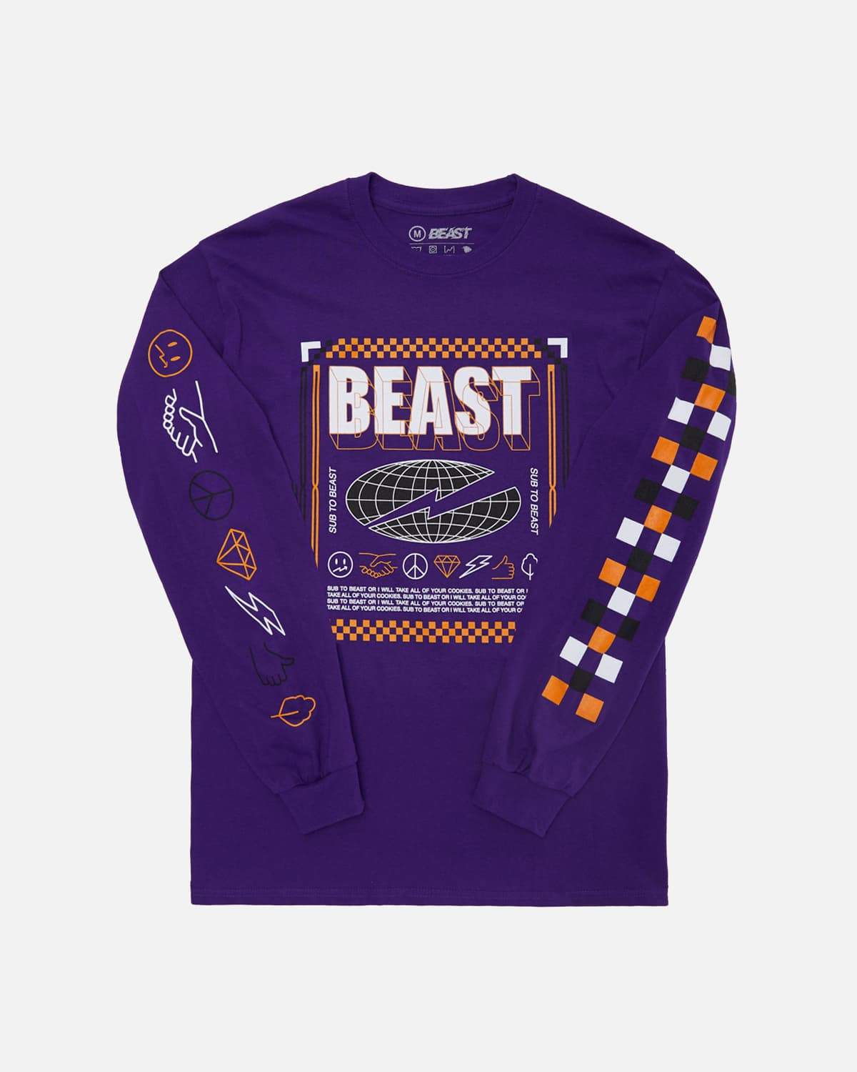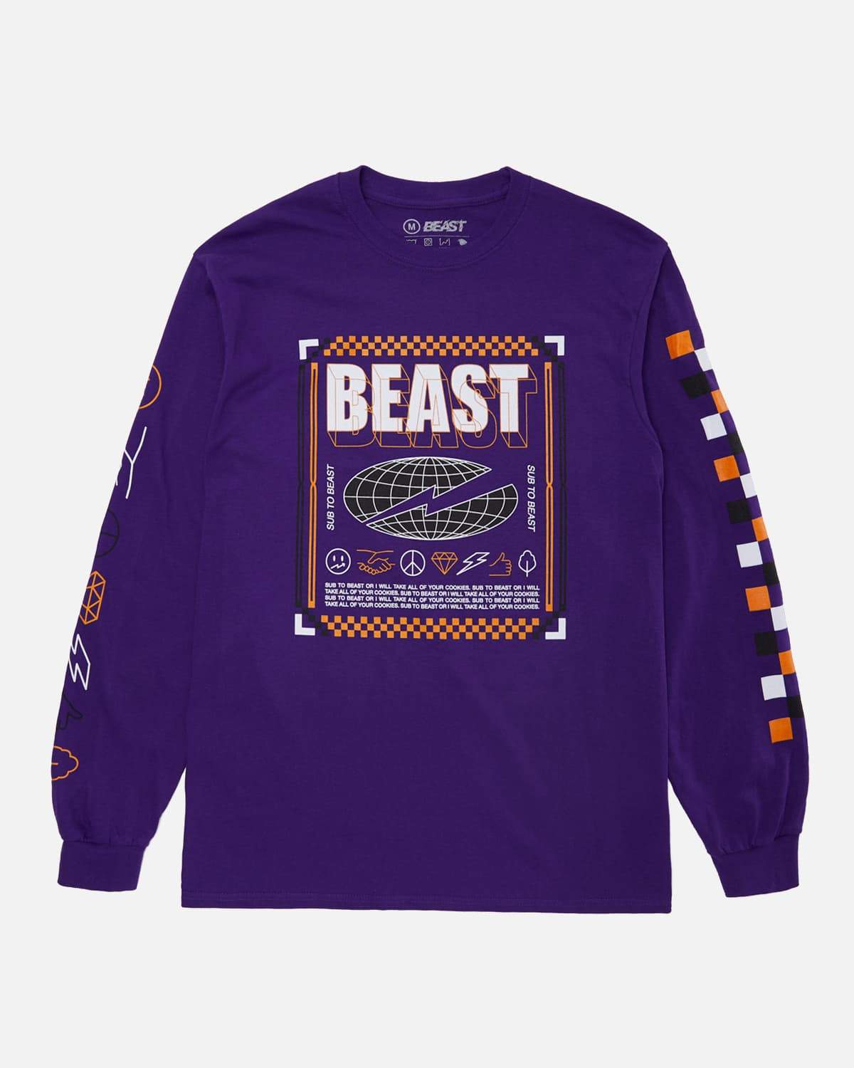 'Checkered Beast' Long Sleeve Tee - Purple